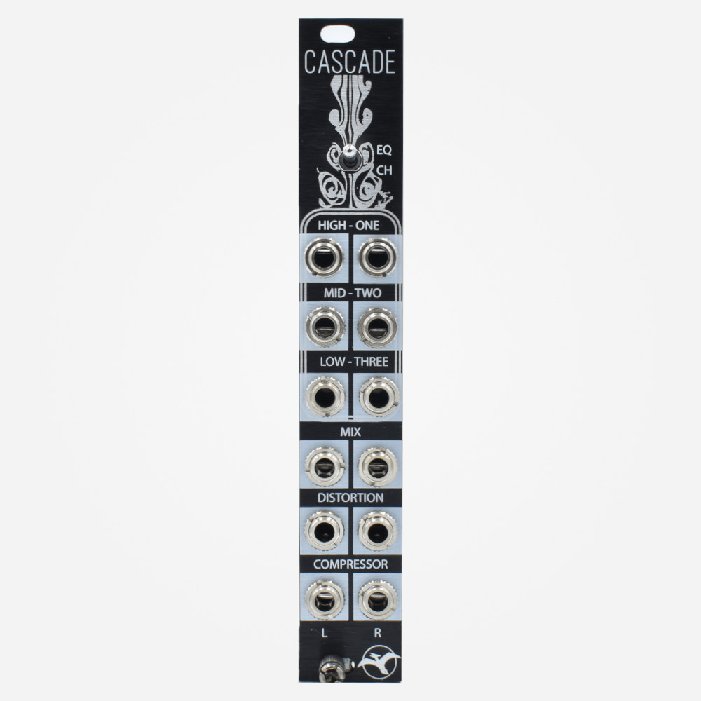 The Cascade is an expander for Eddy that allows access to the individual VCA outputs for use as a triple stereo VCA as well as access to the feedback filter outputs and simultaneous clean, compressed, and distorted bus outputs for additional mixing and processing options.
